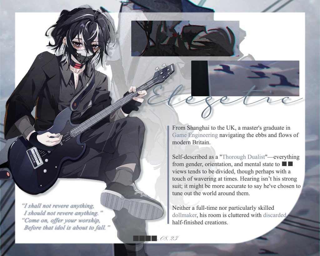 In a world woven from plagues, wars, and dreams, the dollmaker Elegetic breathes life into creations, giving lost souls new vessels.