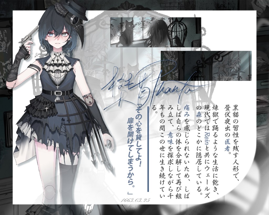 17世紀のロンドンで疫病医のレインは人々を救うために犠牲となり、黒猫として生まれ変わり、果てしない夢の旅を始めます。その仲間ファンタは、冷静でどこか遠い存在感を持つ人形となり、彷徨う魂を静かに守っています。